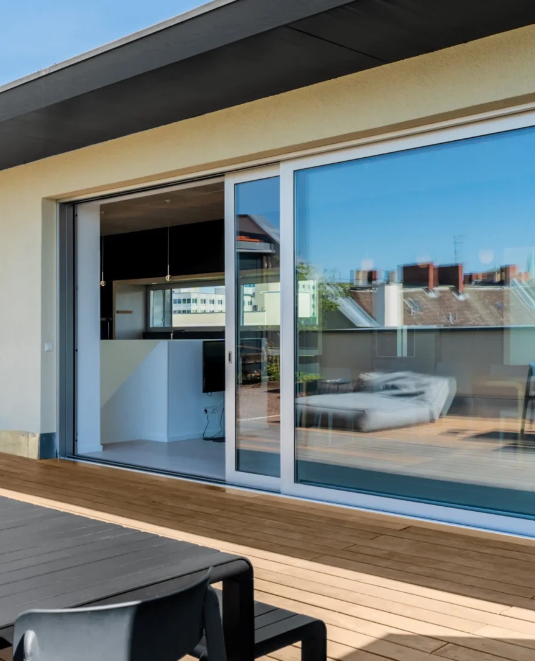 Aluminum window and door frames from EG Aluminium represent modern architecture, durability, and stylish solutions for the home. Our diverse range includes high-quality lift-and-slide doors, elegant front doors for residential houses, space-saving folding doors, durable aluminum sliding doors, as well as windows and doors for patio roof systems. Our offering is complemented by custom-made side wedges and side wall glass for wind-protected comfort areas. Whether for new construction, modernization, or extensions – with EG Aluminium you rely on quality, design, and functionality from a single source.