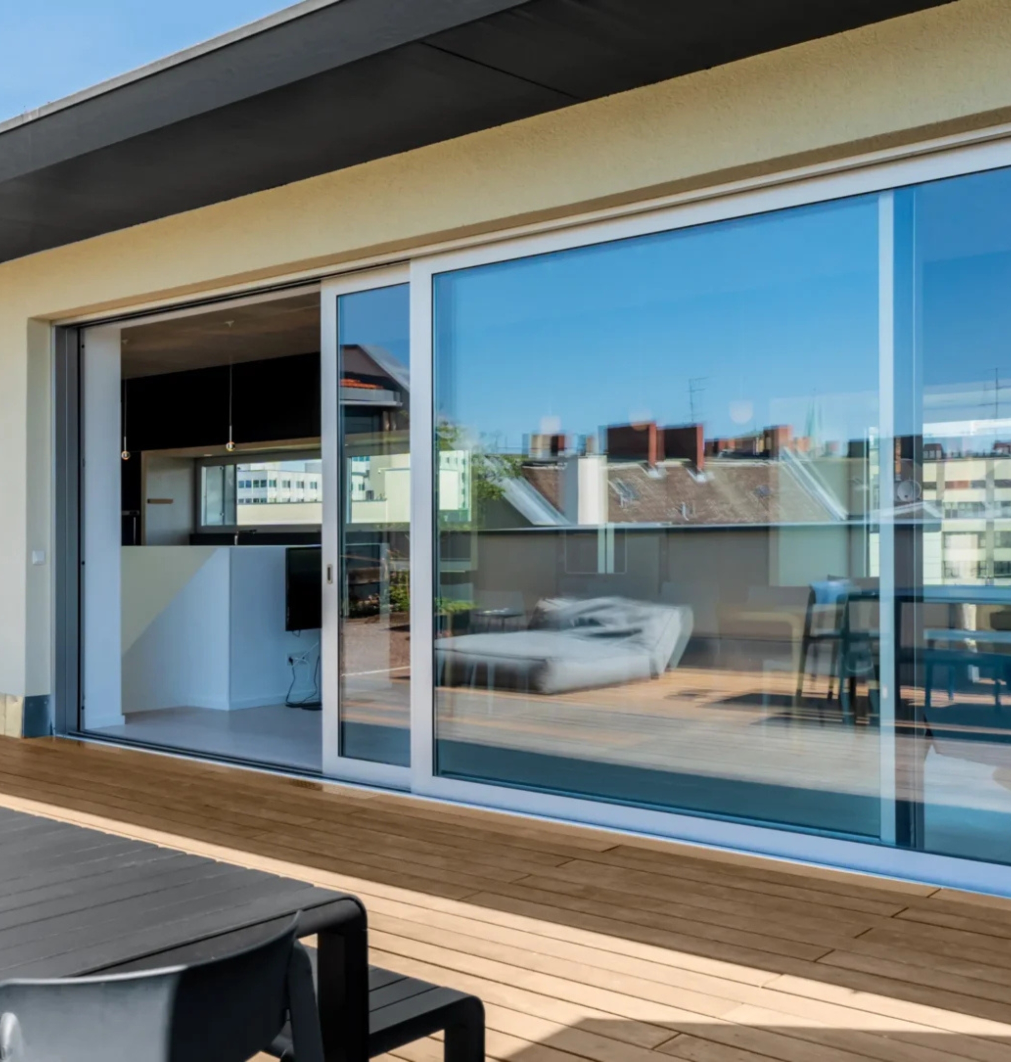 Mit einer Hebeschiebetür oder Alu-Schiebetür von EG Aluminium öffnen Sie Wohnräume elegant zum Garten, Balkon oder zur Terrasse. Großflächige Glasfronten sorgen für lichtdurchflutete Räume und schaffen einen nahtlosen Übergang zwischen drinnen und draußen. Unsere Schiebetürsysteme aus Aluminium überzeugen durch Stabilität, Leichtgängigkeit und modernes Design. Auf Wunsch auch mit wärmegedämmten Profilen für höchste Energieeffizienz.