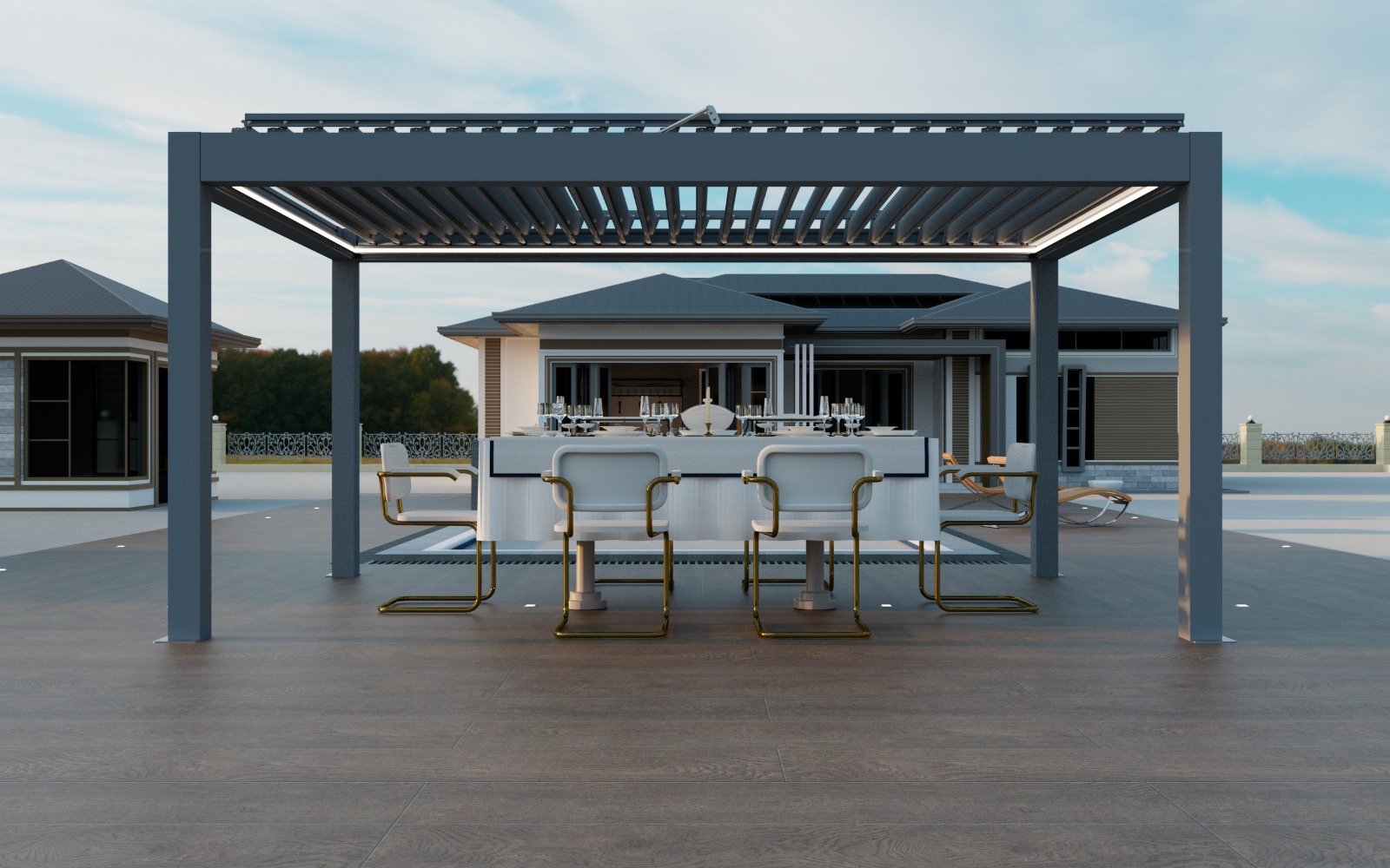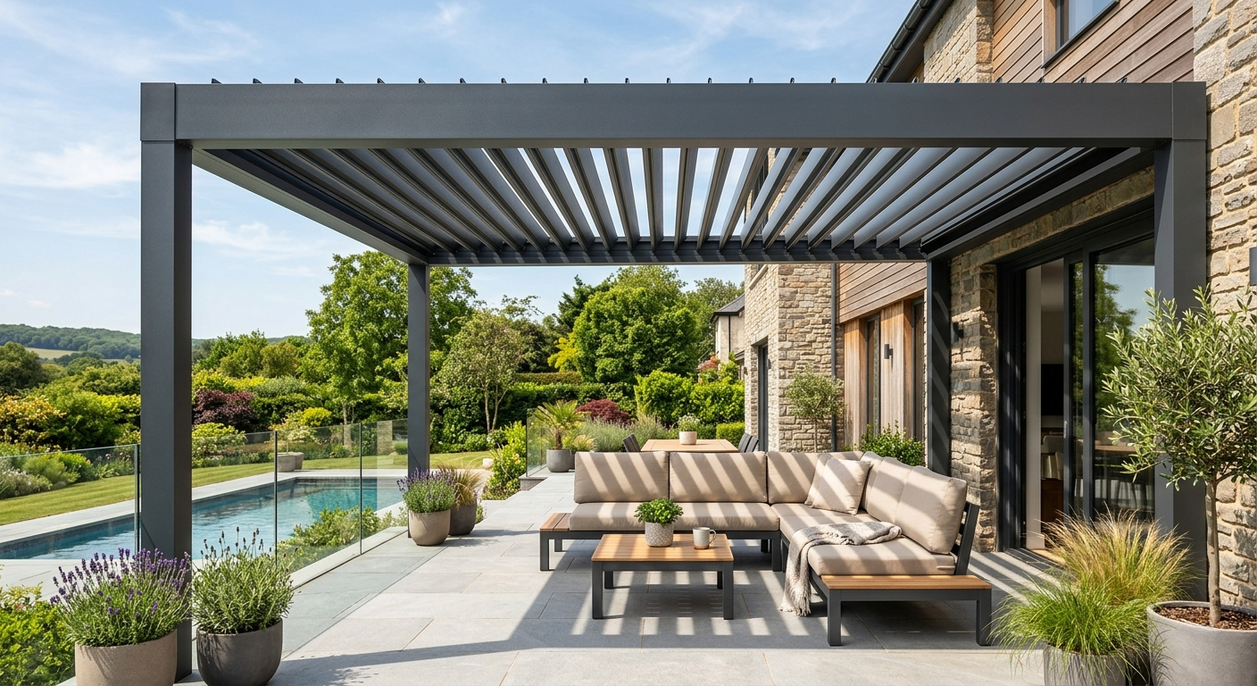 Ein Lamellendach von EG Aluminium steht für stilvollen Wetterschutz mit durchdachter Funktionalität. Ob auf der Terrasse, im Garten oder über dem Pool – mit verstellbaren Aluminiumlamellen genießen Sie das ganze Jahr über ein flexibles Outdoor-Erlebnis. Das moderne Design fügt sich harmonisch in jede Architektur ein und ermöglicht es, Sonnenlicht individuell zu regulieren oder vor Regen zu schützen. Wir fertigen Ihr Lamellendach nach Maß – für private Rückzugsorte ebenso wie für exklusive Gastro- oder Hotelbereiche.