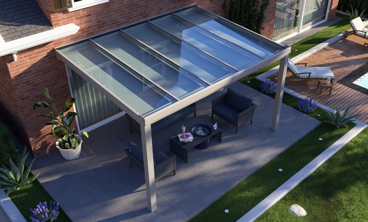 Die Diamond Terrassenüberdachung lässt sich vielseitig erweitern: Mit Glas-Schiebewänden schaffen Sie einen geschützten Raum, Markisen bieten Sonnenschutz, und integrierbare LED-Beleuchtung sorgt für stimmungsvolle Abende. Optional können auch Heizstrahler oder Wettersensoren ergänzt werden, um den Komfort noch weiter zu erhöhen.